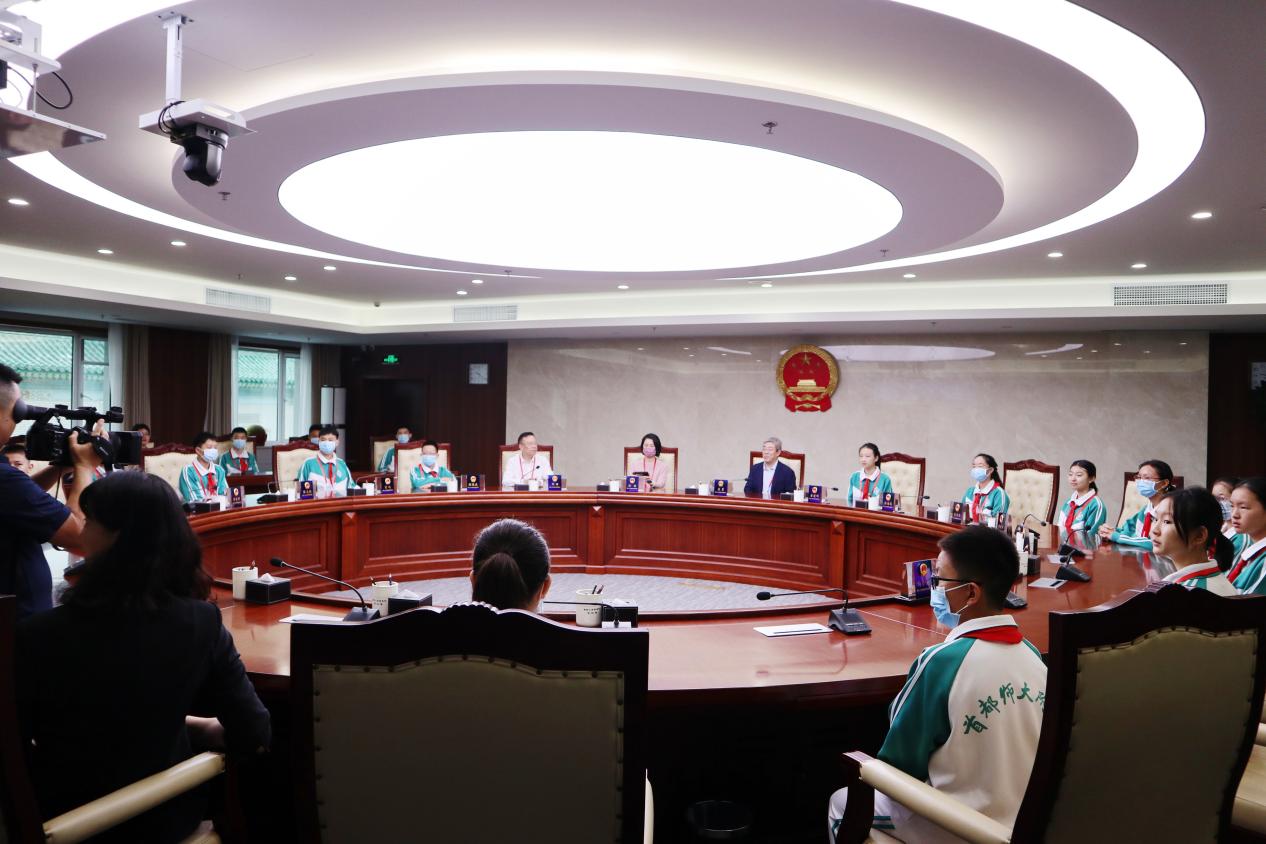 在“六一”國際兒童節(jié)來臨之際,5月30日,最高人民檢察院以“檢愛同行,共護(hù)花開”為主題,舉辦第41次檢察開放日活動。來自首都師范大學(xué)附屬中學(xué)、北京理工大學(xué)附屬中學(xué)、北京市第六十五中學(xué)的90余名師生和7位關(guān)心關(guān)注未成年人檢察工作的全國人大代表、全國政協(xié)委員,一起走進(jìn)最高檢。