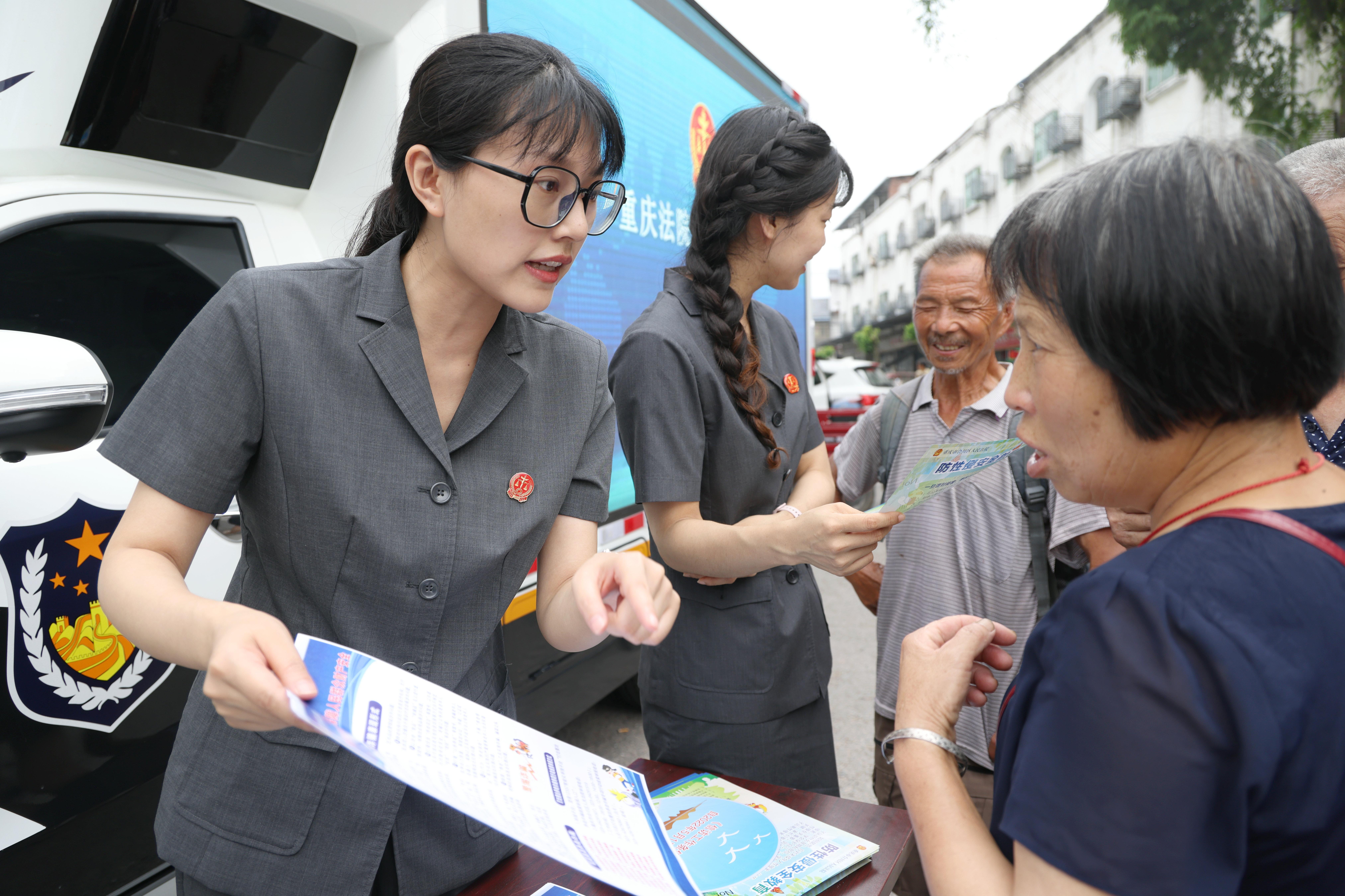 近日,重慶市合川區(qū)人民法院干警將“車載便民法庭”開進轄區(qū)沙魚鎮(zhèn),通過宣講防詐反詐技巧知識、溺水事件警示等,提升家長、學生暑期安全防范意識。