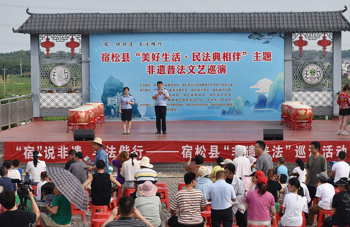 5月26日,安徽省宿松縣司法局“非遺普法”文藝演出隊(duì)走進(jìn)高嶺鄉(xiāng)青云村開(kāi)展民法典普法宣傳。通過(guò)群眾喜聞樂(lè)見(jiàn)的文南詞、大鼓書(shū)、小品、歌曲聯(lián)唱、有獎(jiǎng)問(wèn)答等形式宣講法律知識(shí),增強(qiáng)村民尊法學(xué)法守法用法意識(shí)。