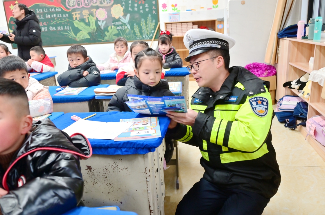 2月14日,是江西省武寧縣各中小學校、幼兒園春季開學第一天。武寧縣公安局交管大隊組織民輔警深入轄區(qū)校園開展內(nèi)容豐富、形式多樣的“開學第一課”交通安全宣傳活動,在孩子們心中播撒交通安全的種子。