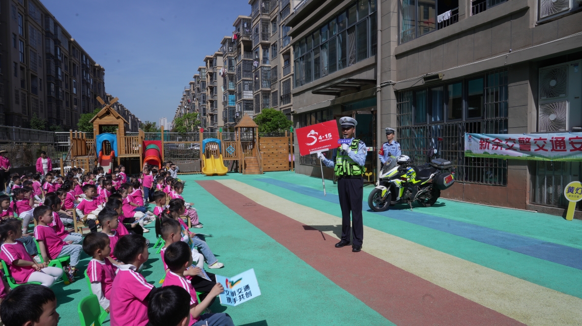 圖為民警走進(jìn)新余市盛世金鼎幼兒園開展安全宣傳活動(dòng)。
