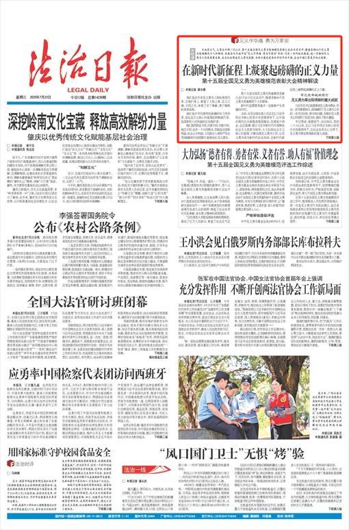 天地有正氣,義勇古今頌。7月21日,第十五屆全國見義勇為英雄模范表彰大會在北京召開,隆重表彰60個見義勇為英雄模范個人和群體。本報自今天起開設“見義中華魂 勇為萬家安”專欄,刊發(fā)一系列相關報道,進一步推動見義勇為工作高質量發(fā)展,在全社會營造見義勇為氛圍,為助力建設更高水平的平安中國、法治中國匯聚更多的正能量。
