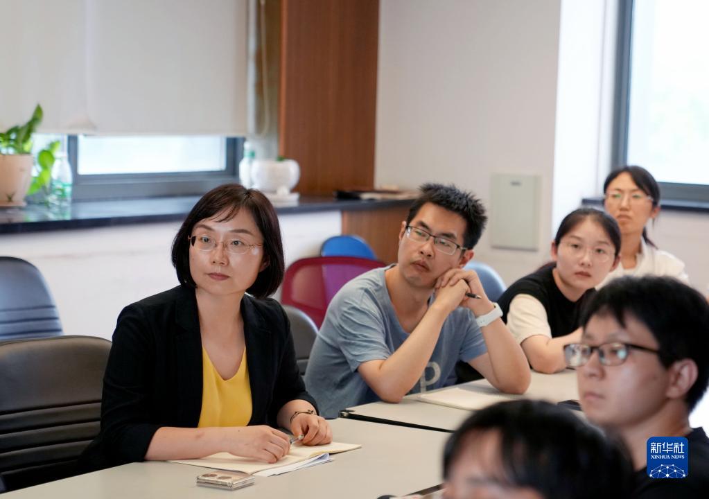 陳玲玲(左一)在中國(guó)科學(xué)院分子細(xì)胞科學(xué)卓越創(chuàng)新中心和學(xué)生們開(kāi)會(huì)(2022年9月13日攝)。新華社記者 劉穎 攝