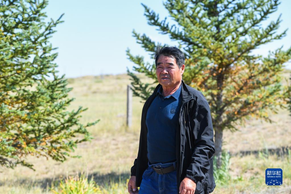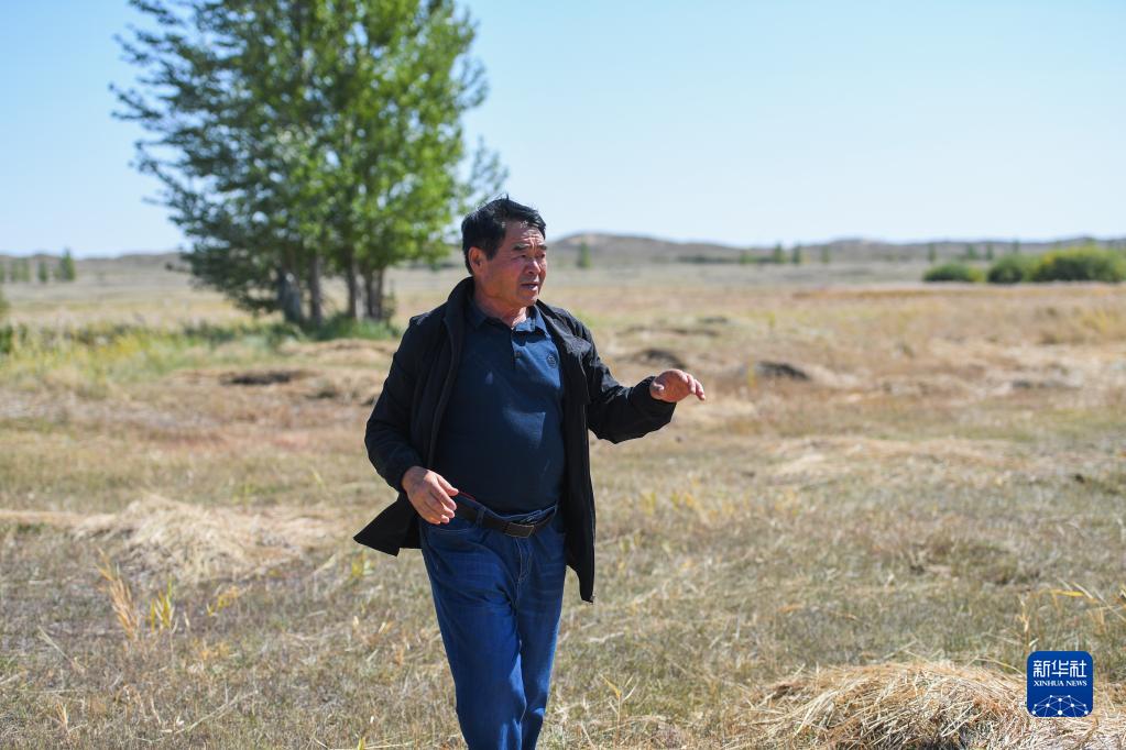 廷·巴特爾在查看自家草場(chǎng)(9月8日攝)。新華社記者 劉磊 攝