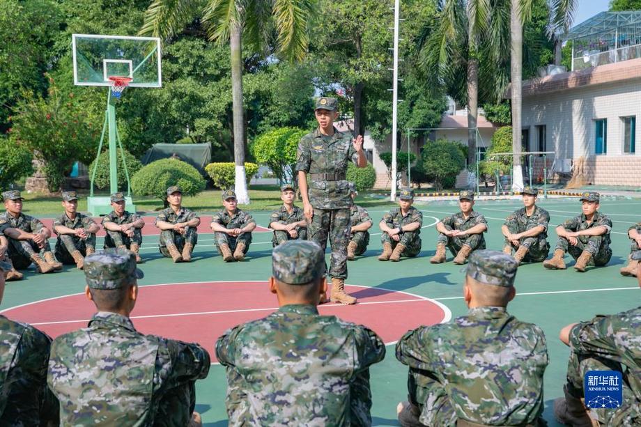 10月18日,武警廣西總隊機動支隊組織官兵學習黨的二十大報告。新華社發(fā)(劉明 攝)