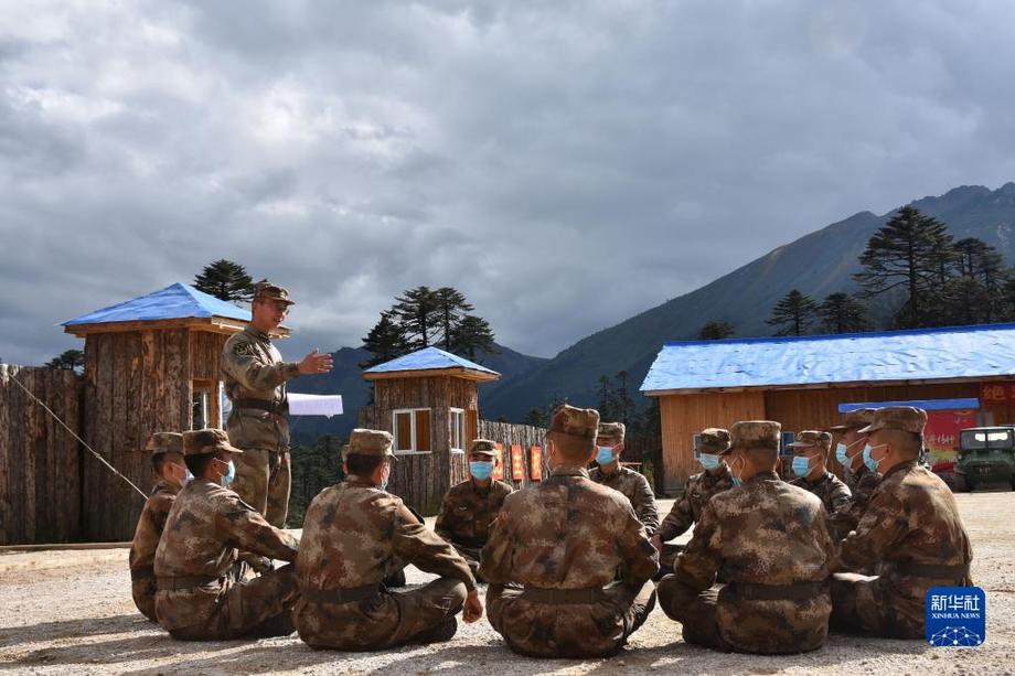 10月17日,西藏林芝軍分區(qū)“墨脫戍邊模范營”組織官兵學習黨的二十大報告。新華社發(fā)(游毅 攝)