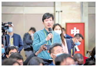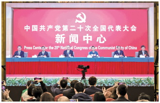 10月19日,黨的二十大新聞中心舉行記者招待會(huì)。圖為本報(bào)記者提問。 本報(bào)記者 王建軍 攝