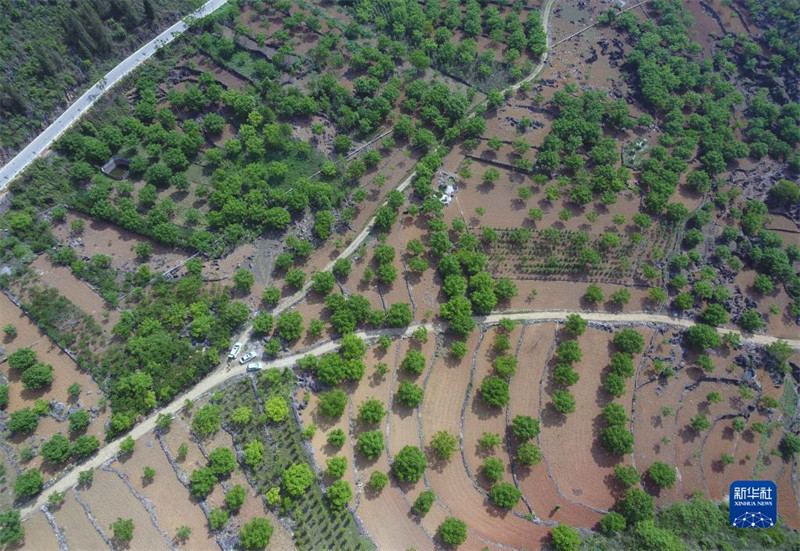 這是云南西疇縣蚌谷鄉(xiāng)木者村的果園(2019年4月17日攝,無(wú)人機(jī)照片)。新華社記者 楊宗友 攝