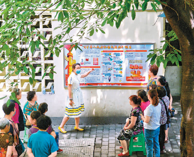 6月1日,在重慶市渝中區(qū)朝天門街道白象街社區(qū),街道司法所的工作人員正在向居民宣講《中華人民共和國(guó)民法典》。張錦輝攝(人民視覺)