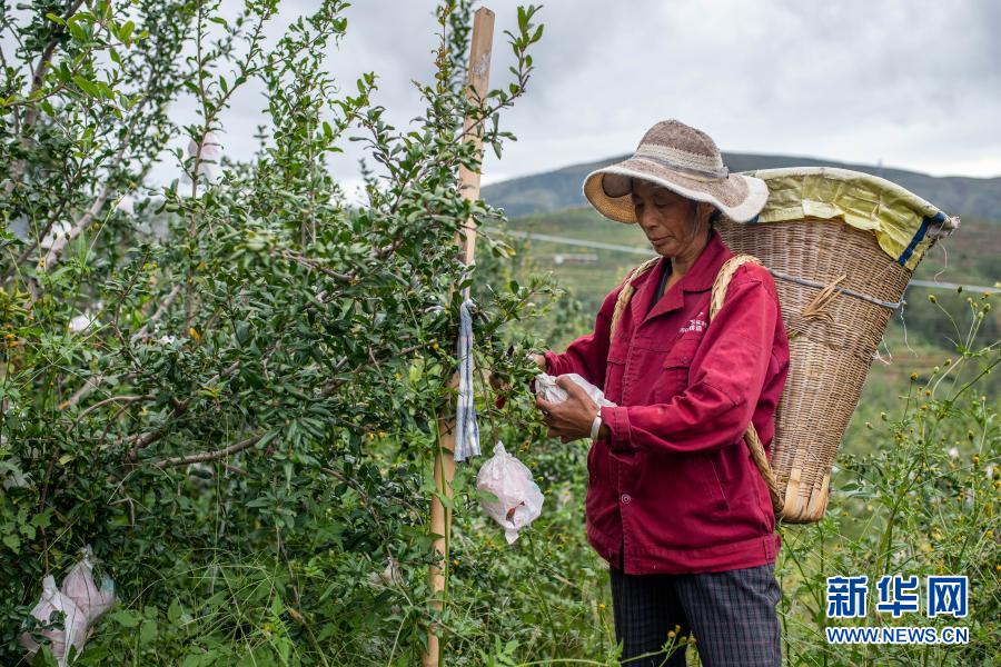 在云南省會澤縣娜姑鎮(zhèn)干海子村,干海子種植專業(yè)合作社的負責人莊錘兵正在地里管護石榴樹。