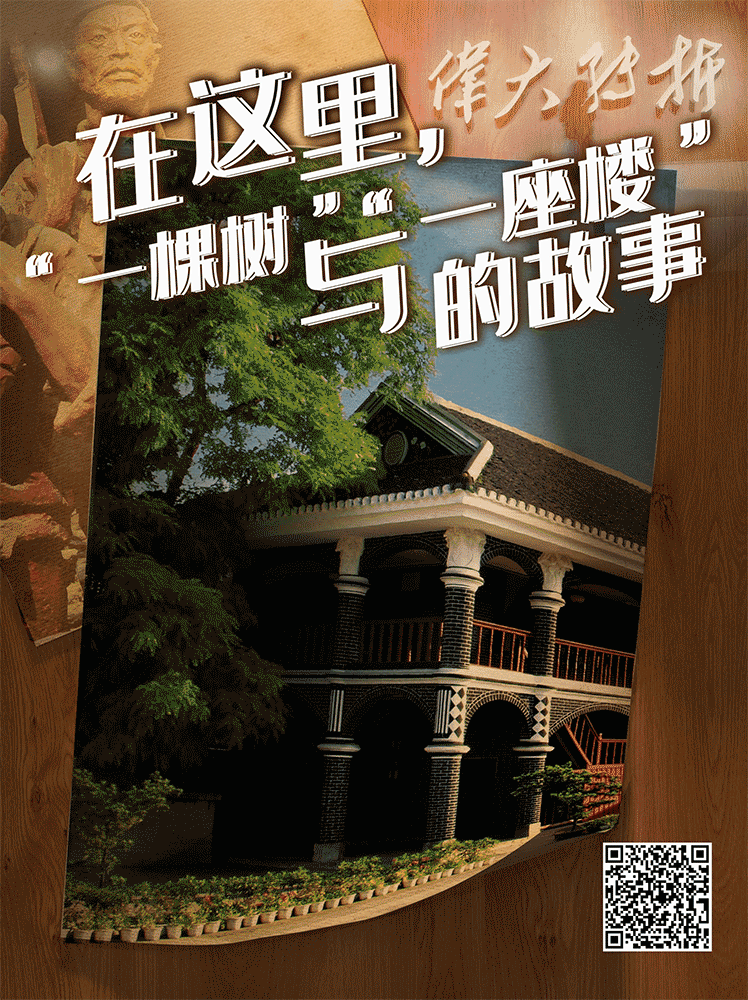 如今,游客來到會址參觀會發(fā)現(xiàn),小樓旁的槐樹不止一棵,而是兩棵了。20世紀80年代,大槐樹的一顆種子落到樹下泥土中,慢慢生根發(fā)芽,如今也有10米高了。兩棵槐樹生長方向正好相反,慢慢地,竟然形成一個“V”字形。