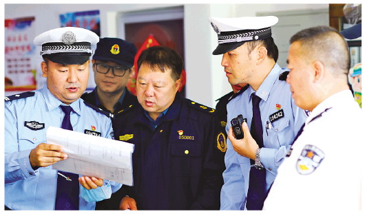 圖為天津市公安交管局南開(kāi)支隊(duì)聯(lián)合南開(kāi)區(qū)道路運(yùn)輸執(zhí)法支隊(duì)進(jìn)行交通安全執(zhí)法檢查。 通訊員 戴武權(quán) 攝