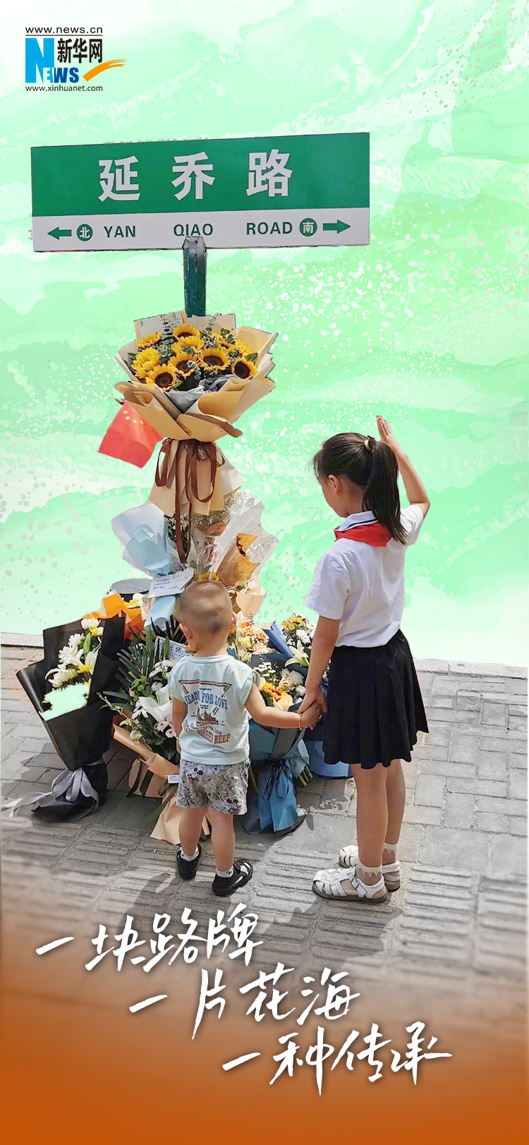 這幾天,這塊路牌成為鮮花環(huán)繞的“紀(jì)念碑”,人們自發(fā)在路牌下插上國(guó)旗,擺放鮮花、卡片。