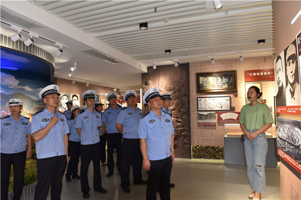 在大余梅嶺,民輔警代表參觀了陳毅紀(jì)念館,聆聽(tīng)開(kāi)國(guó)元?jiǎng)讉冊(cè)谄D苦卓絕斗爭(zhēng)條件下的感人故事,感受革命前輩勇往直前的斗志和視死如歸的氣魄。誦讀《梅嶺三章》,深切感受那激蕩天地的革命豪情以及堅(jiān)貞不屈的人格力量。