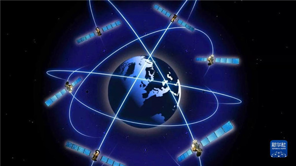 北斗全球組網(wǎng)示意圖(動(dòng)畫演示)。新華社發(fā)