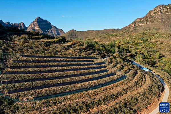 這是2020年10月16日在山西省左權(quán)縣拍攝的一處村級光伏電站(無人機(jī)照片)。新華社記者 曹陽 攝