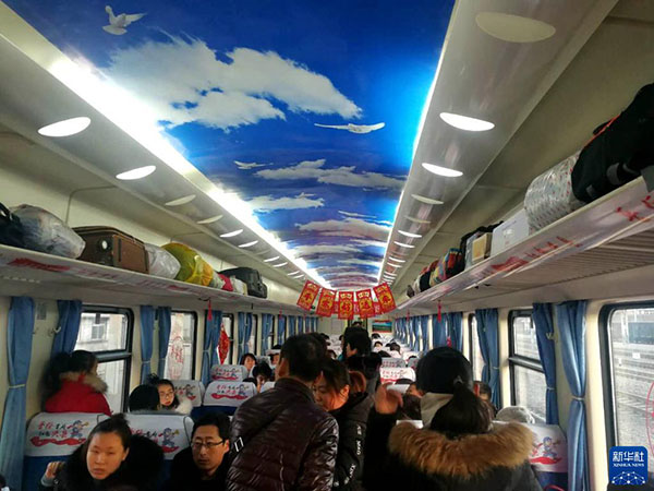 這是2019年1月21日拍攝的“蔡家崖”號列車車廂內(nèi)景。新華社記者 呂夢琦 攝