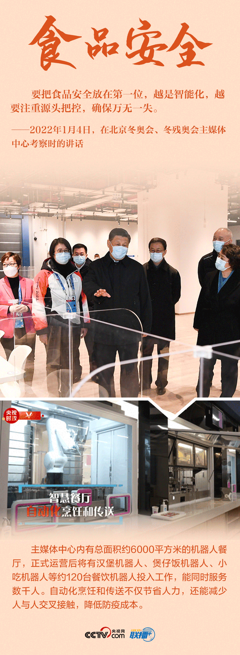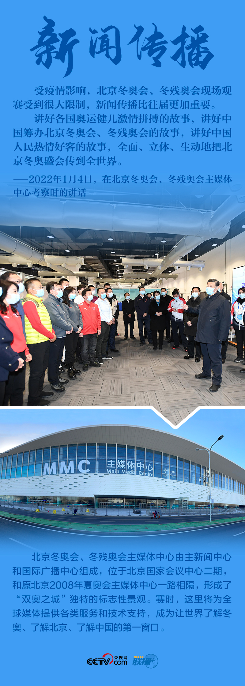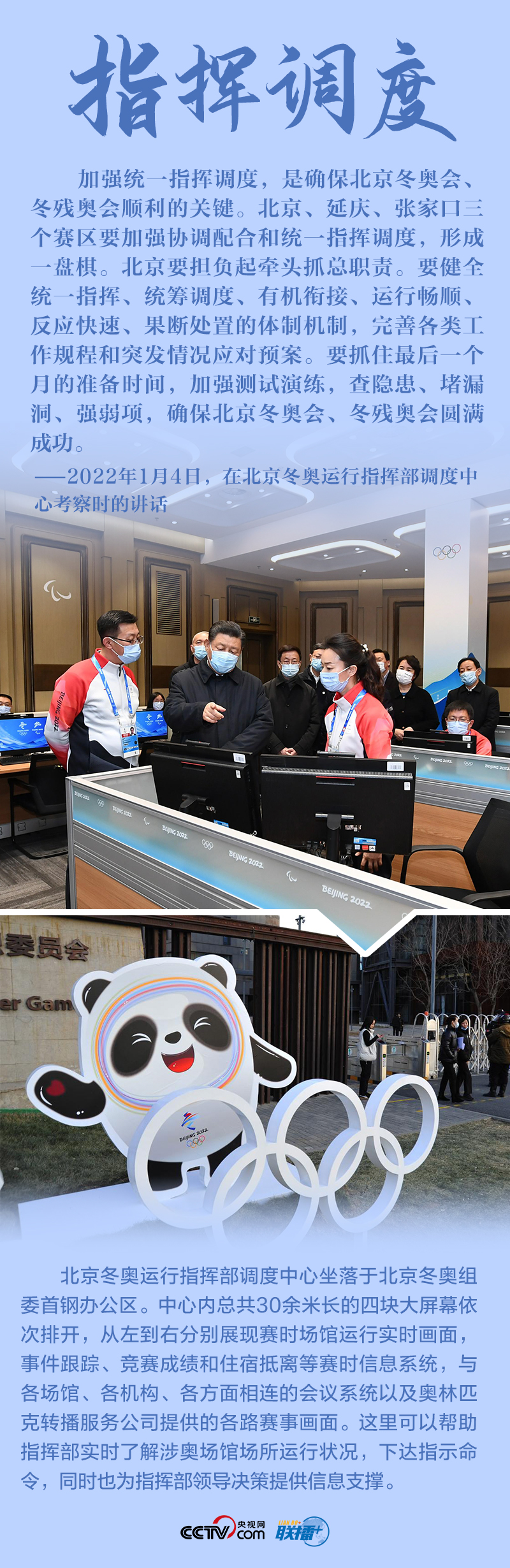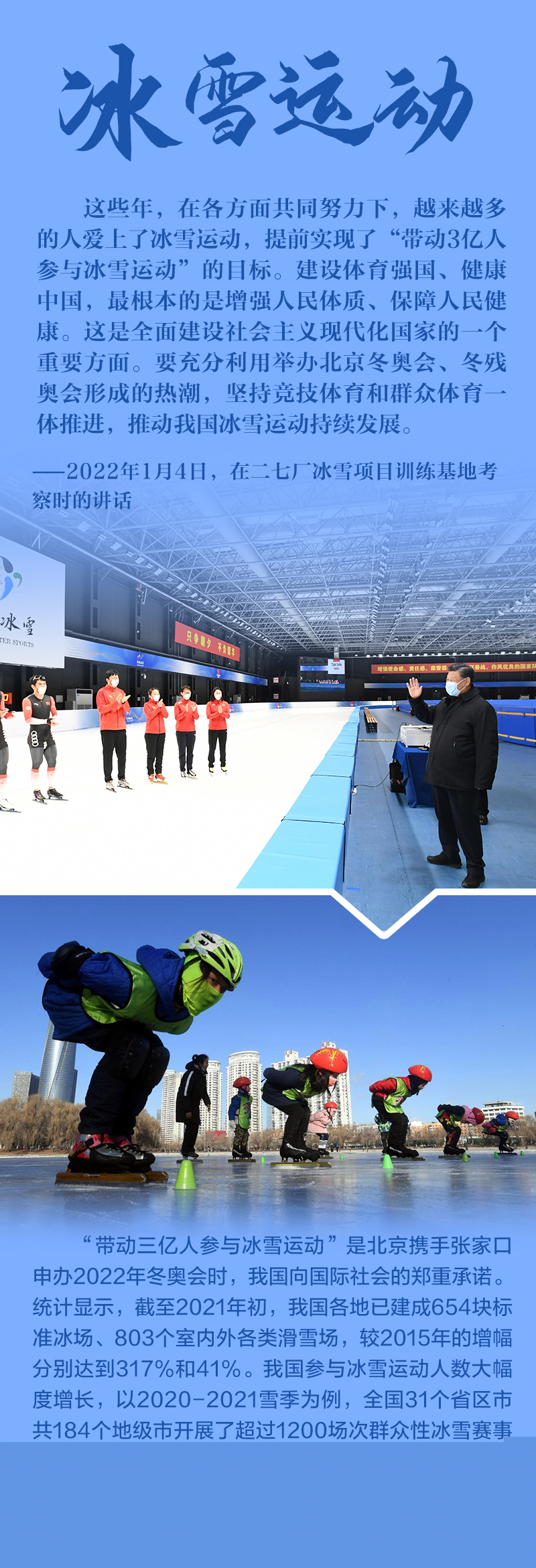 “今天是元旦后上班第一天,我來專題調(diào)研北京冬奧會(huì)、冬殘奧會(huì)籌備工作,主要是來給大家鼓勁加油。”1月4日,北京冬奧會(huì)開幕倒計(jì)時(shí)一個(gè)月之際,習(xí)近平總書記在北京深入體育場館、媒體中心、訓(xùn)練基地等,實(shí)地了解2022年冬奧會(huì)、冬殘奧會(huì)籌辦備賽情況。