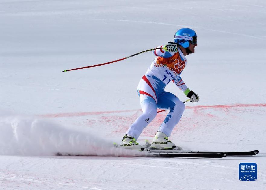 2014年2月9日,馬蒂亞斯·邁爾在索契冬奧會高山滑雪男子滑降比賽中。新華社記者 李鋼 攝