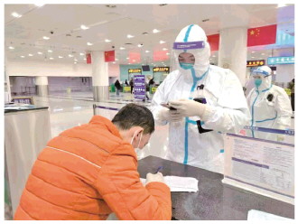 “手套、鞋套、面屏、連接處封死……”1月25日9點半,遼寧大連周水子出入境邊防檢查站執(zhí)勤四隊教導(dǎo)員常亮嘴里一邊嘟囔著,一邊穿上防護服。由于接下來的幾個小時需要穿防護服執(zhí)勤,他把早飯和午飯合在了一起吃,盡量少喝水,然后從專用通道走出隔離酒店,乘車前往執(zhí)勤現(xiàn)場,第四次參加閉環(huán)勤務(wù)。