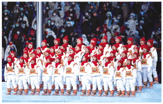 圖為“馬蘭花兒童合唱團”用希臘語在第二十四屆冬季奧林匹克運動會開幕式上歌唱。 新華社記者 曹燦 攝