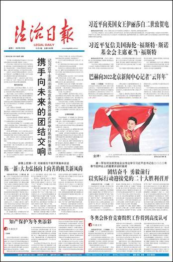 綜合運(yùn)用法律、行政、技術(shù)、社會(huì)治理等手段,對涉奧知識產(chǎn)權(quán)予以全方位、立體化的保護(hù),不僅為冬奧盛會(huì)的舉辦營造了良好氛圍,也切實(shí)增強(qiáng)了全社會(huì)保護(hù)知識產(chǎn)權(quán)的意識和自覺性。相信強(qiáng)有力的知識產(chǎn)權(quán)保護(hù)舉措,一定會(huì)為北京冬奧會(huì)的成功舉辦增色添彩。