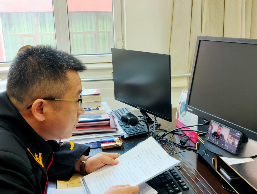 臘月二十八,《法治日報》記者來到了青海省西寧市城北區(qū)法院廿里鋪法庭。此時法庭庭長張永平正身著法袍,坐在辦公室內(nèi),對著手機(jī)調(diào)解一起糾紛。原被告雙方代理人也同時出現(xiàn)在手機(jī)屏幕中。