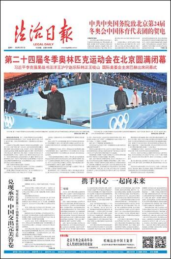 北京冬奧會為中國發(fā)展提供了新機遇,也為世界貢獻了更多可能?!耙黄鹣蛭磥怼笔潜本┒瑠W會的愿景,簡潔凝練的表述中蘊含著博大智慧和深厚情懷,發(fā)出了構建人類命運共同體的中國倡議。各國運動員在賽場上,呈現(xiàn)給世界的不僅有挑戰(zhàn)自我、突破極限的拼搏精神,還有相互支持、彼此成就的美好友誼。在對手比賽失利后主動安慰、成功后真誠擁抱祝?!荒荒恍氖窒噙B、情意相牽的動人場景,在瞬間定格成為永恒。北京冬奧會以全球共通的體育語言和體育精神,積極踐行了“更快、更高、更強——更團結”的奧林匹克格言,生動地詮釋著人類命運共同體的理念,向全世界傳遞出明確信息:奧林匹克精神是人類團結的燈塔,任何國家、民族、宗教的人民都可以超越分歧,實現(xiàn)團結與合作。