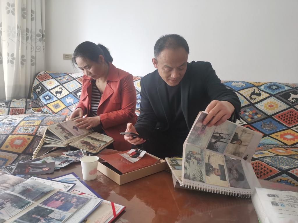 劉子旭的父母在家中翻看孩子小時(shí)候的照片。