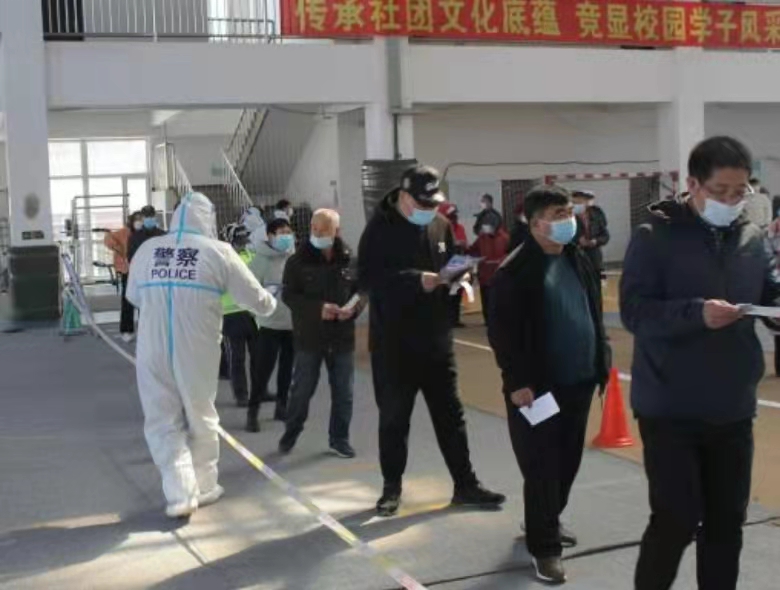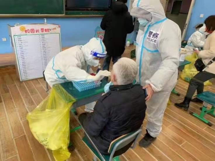 為及時(shí)有效發(fā)現(xiàn)和控制傳染源,保障人民群眾生命安全和身體健康,2022年3月17日,遼寧省沈陽(yáng)市啟動(dòng)為期兩天的全民核酸檢測(cè)。為了確保核酸檢測(cè)有序進(jìn)行,沈陽(yáng)市公安局緊急抽調(diào)市、區(qū)兩級(jí)公安機(jī)關(guān)警力,迅速組織9828名公安民警、輔警及7981名“盛京使者”志愿者投入核酸檢測(cè)安保工作。他們堅(jiān)守在全市兩千余個(gè)核酸檢測(cè)采樣點(diǎn),在乍暖還寒的初春給沈城人民送去溫暖和平安。
