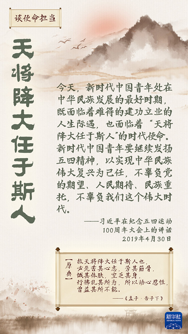黨的十八大以來,習(xí)近平總書記經(jīng)常引用古語勉勵(lì)青年,與他們談人生理想、談求知求學(xué)、談使命擔(dān)當(dāng)。