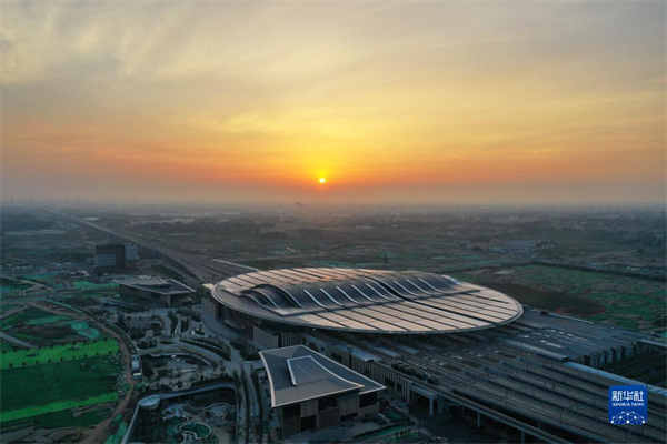 這是京雄城際鐵路雄安站(2021年7月1日攝,無人機照片)。新華社記者 牟宇 攝