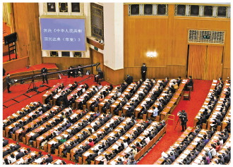 圖為2020年5月,十三屆全國人大三次會議通過了《中華人民共和國民法典》,自2021年1月1日起施行。這是我國第一部以法典命名的法律。 居楊 攝