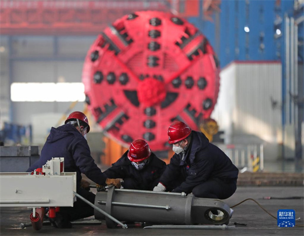 工人在沈陽北方重工集團(tuán)有限公司盾構(gòu)機分廠車間工作(2020年2月10日攝)。 新華社記者 楊青 攝