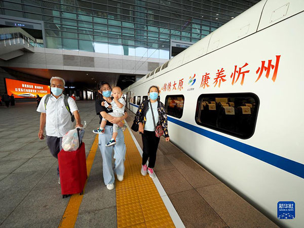 乘客在山西太原南站準(zhǔn)備乘坐D5306次動(dòng)車(chē)組列車(chē)(2022年7月4日攝)。新華社發(fā)(張炯攝)