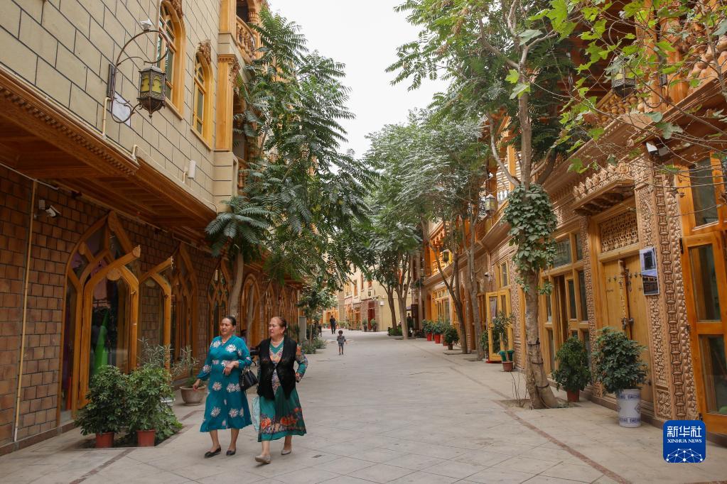 這是在新疆和田市拍攝的由北京市援疆資金支持改造的團城(2019年8月1日攝)。為改善居住環(huán)境,保持和田歷史文化街區(qū)風貌,當?shù)乩帽本┦性Y金,對和田老城區(qū)進行保護、安居、旅游與就業(yè)四位一體的改造。新華社發(fā)(許珠珠 攝)