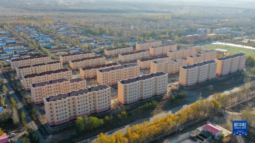 這是新疆昌吉市阿什里鄉(xiāng)天鵝小鎮(zhèn)(無人機照片,2020年10月16日攝)。天鵝小鎮(zhèn)是由福建援疆泉州分指揮部支援建設的牧民定居項目。新華社記者 丁磊 攝
