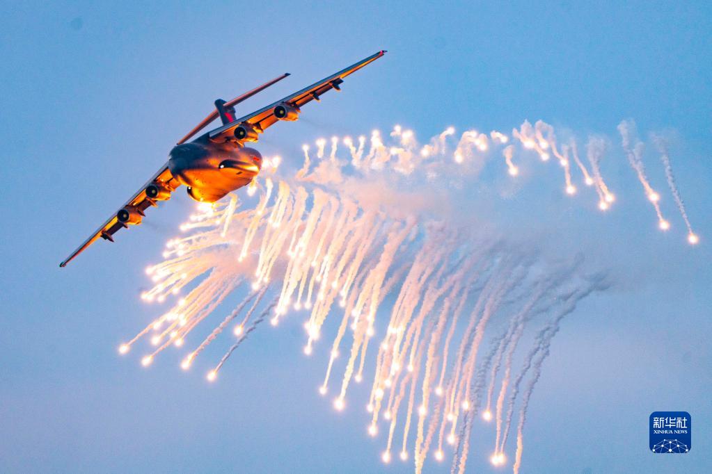 中部戰(zhàn)區(qū)空軍航空兵某團運-20飛機進行釋放干擾彈訓(xùn)練(2020年12月10日攝)。新華社發(fā)(張猛 攝)