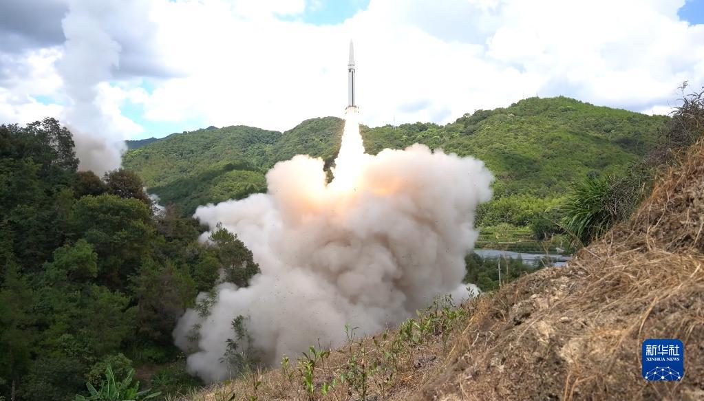 東部戰(zhàn)區(qū)火箭軍對臺島東部外海預(yù)定海域?qū)嵤┗鹆ν粨?。這是導(dǎo)彈發(fā)射升空(2022年8月4日,視頻截圖)。新華社發(fā)