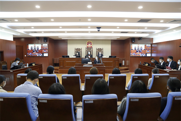 圖為北京市海淀區(qū)人民法院在北京市知識產權保護中心巡回開庭。